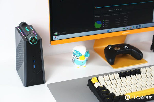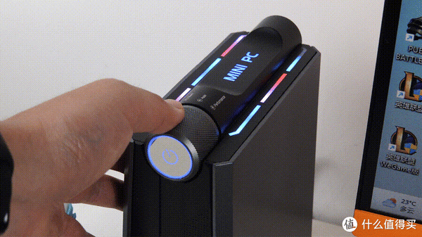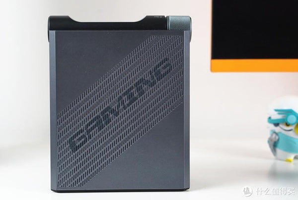 The knob integrates the function of the power button, which can realize power on and off, sleep/wake up, etc., and it can also be linked with the power consumption wall setting in the BIOS, which is convenient for users to quickly switch between silent mode, automatic mode and performance mode. Both the middle and both sides of the top support RGB light effects, and the colors of the lights are different under different performance modes, which is extremely cool.