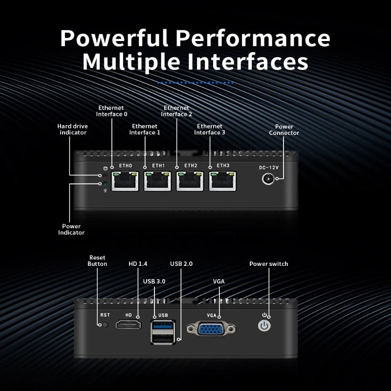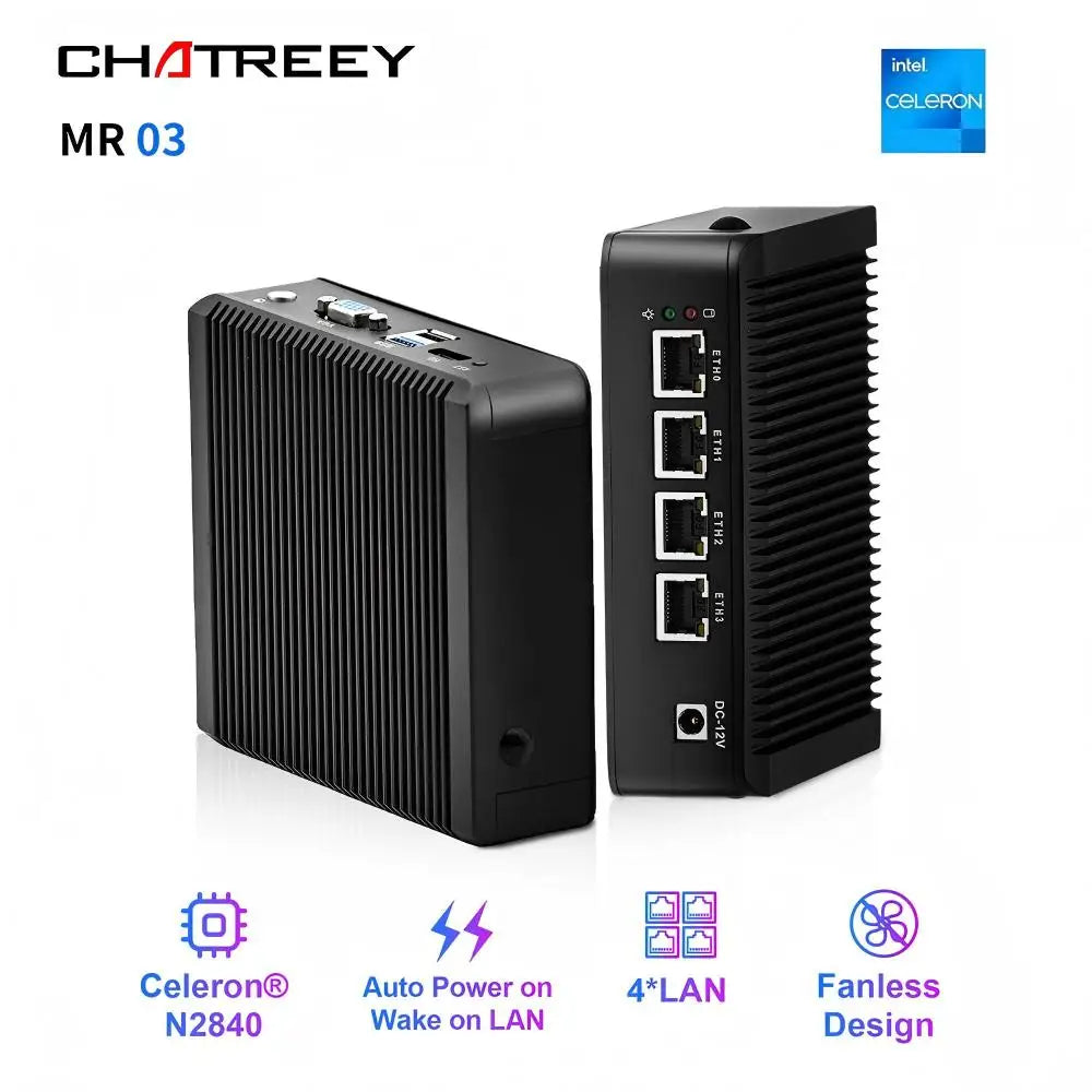 Chatreey Fanless Industrial MR03 Mini PC intel N2840 Desktop Computer 4*Intel LAN i225 for Pfsense Firewall Soft Router